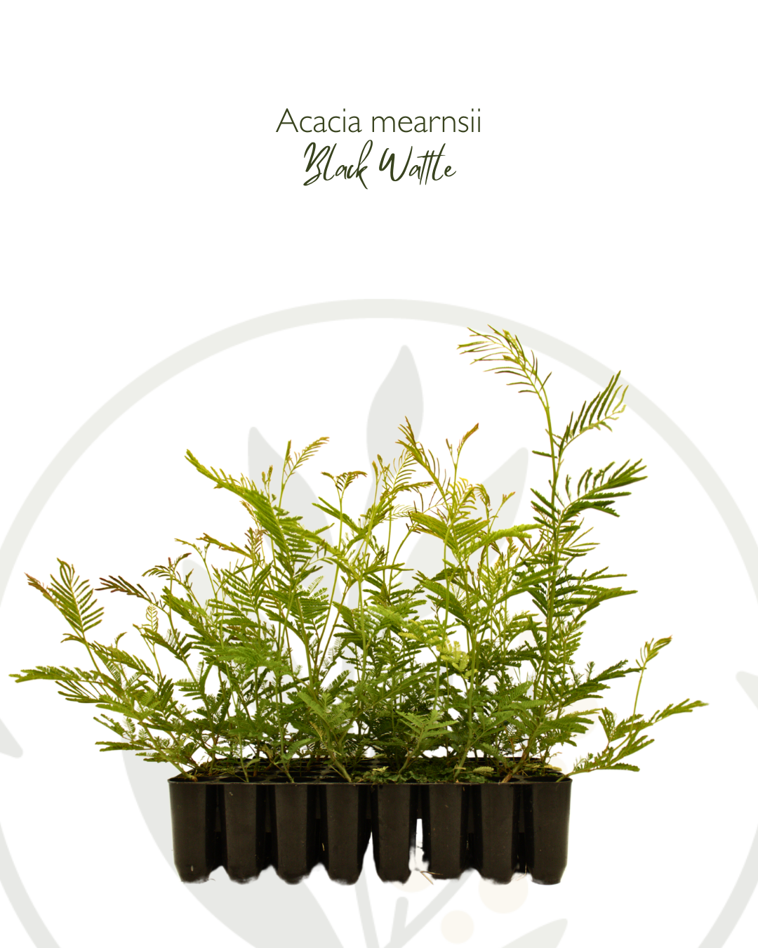 Acacia mearnsii, commonly known as Black Wattle, is a robust and fast-growing tree native to south-eastern Australia. It thrives in a variety of soil types, demonstrating a high level of adaptability to different environmental conditions. Black Wattle is particularly noted for its dense, dark green foliage and the production of rich, golden-yellow flowers. Widely used in reforestation projects, this species is excellent for soil stabilization and enhancing biodiversity. It is also valued for its bark, which is a significant source of tannins used in leather production. Acacia mearnsii is frost resistant and prefers full sun, making it a durable and attractive choice for broad-scale landscaping and ecological recovery efforts.
